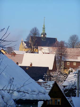 Willkommen in Hinterhermsdorf - auch im Winter Weifbergturm Blick zur Kirche Winter Campingplatz im Winter Waldhusche